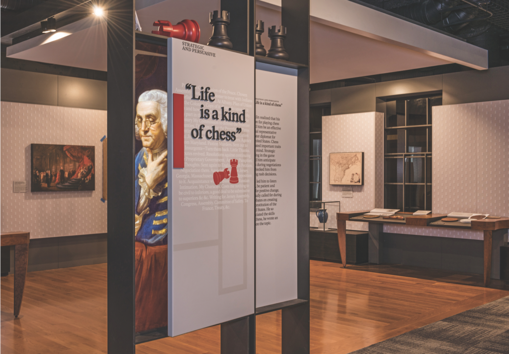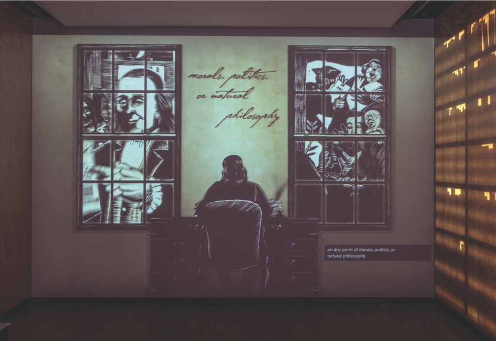 Installation at the Benjamin Franklin Museum, Franklin Court, photographed by Kennedy for GPTMC, 2013. National Park Service photograph.